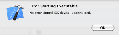 3.插入了设备,如iPad、iPhone、iPod等,但弹出“No provisioned iOS device is connected.”警告消息框如下: