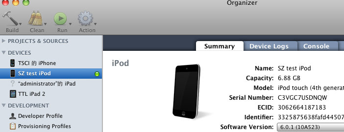 重新插入设备,确保“Window-->Organizer”窗口中左侧的设备有绿色亮点: