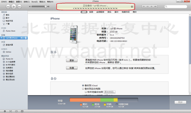 五、开始备份手机数据,如下图。