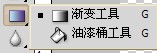 这个时候你要把前景色换成黑色,然后鼠标左键双击类似渐变的一个图标。如图所示:
