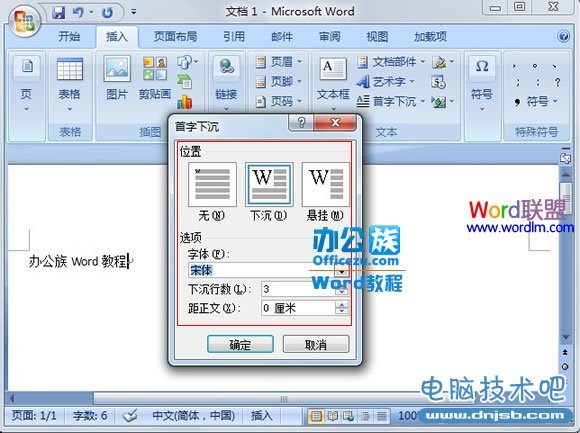 3、弹出首字下沉设置框,我们可以进行更加详细的设定。