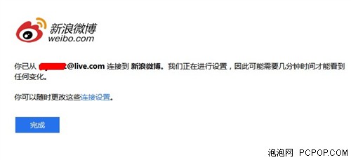 如果你看到与下面这张图片相类似的网页界面后,那么,你已经成功将Microsoft(微软)账户与新浪微博绑定。