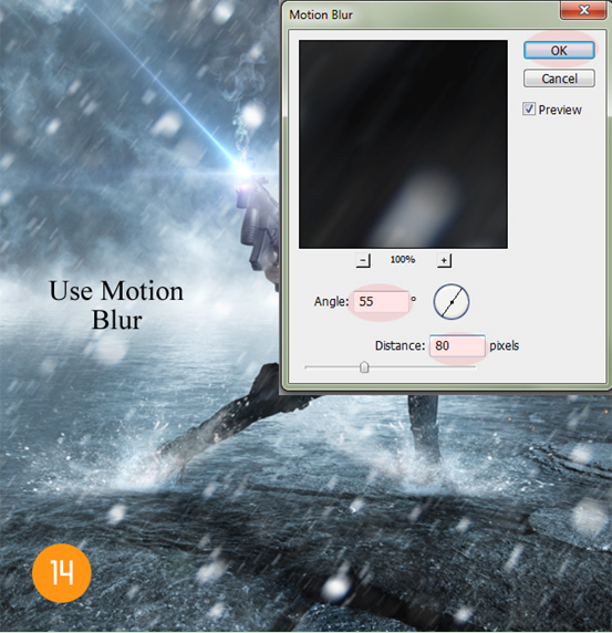 设置模糊角度为55,距离为80像素