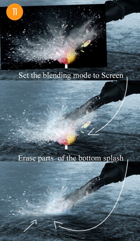 如果你不想让模型中女人的脚部泼溅的效果看上去过于真实,你可以添加其他效果让泼溅效果更大更自然让其看上去如同她刚从直升飞机或者更小的一些东西中跳下来那样。