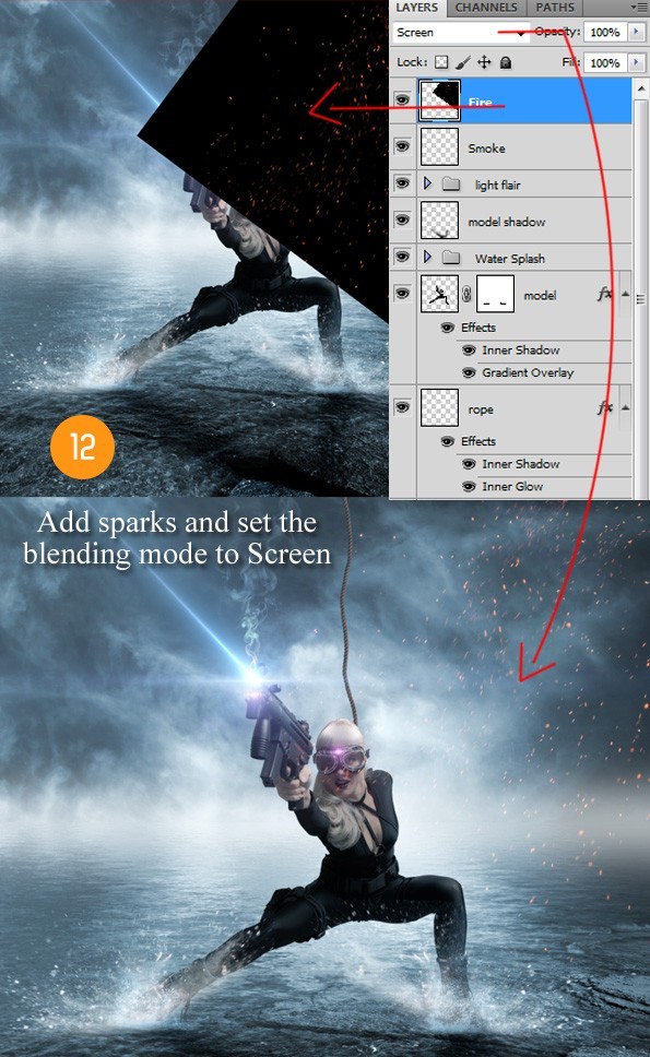 选择火花图像,然后将它应用到示例图片的位置上