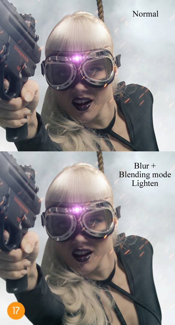 滤镜-模糊-高斯模糊,然后设置模糊度为1,距离6个像素然后点击确定,改变这些图层的混合模式为“变亮。要确保这个图层是我们先前所有做的图层,你可以将其命名为“轻度模糊”