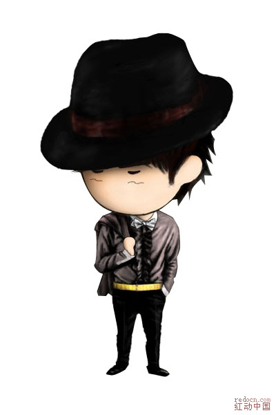 3、卡通人物的图层后面新建一个背景图层并充填为黑色。