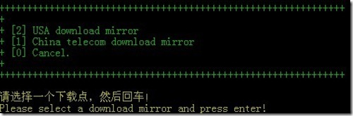 5、选择下载点:China的为中国电信下载点(默认),USA为美国下载点。选择好后回车