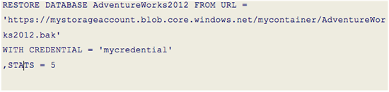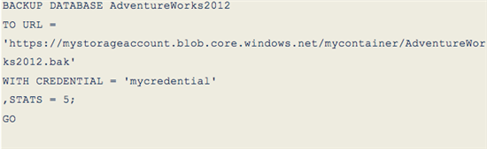 如上所述,URL 像我们现在使用的备份设备一样,但它并不是一个物理设备,所以有一些限制。有关它支持的方法的全部清单,请参阅SQLServer Backup and Restore with Windows Azure Blob Storage Service。