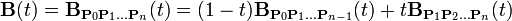 表示由点P0、P1、…、Pn所决定的贝塞尔曲线。则有: