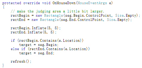 * 按下鼠标,如果落点在某个控制点上,就表示选中了该点,否则落空