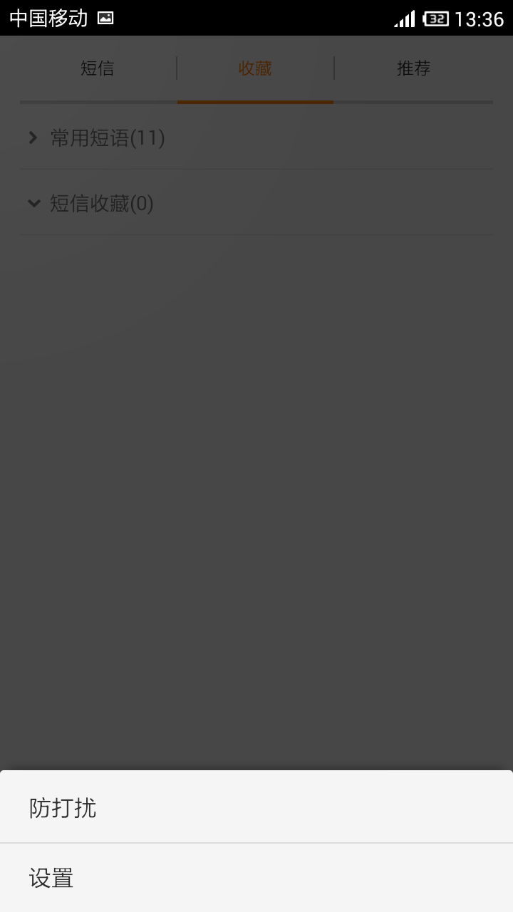 1、进入短信后点菜单键,如下图,再点设置