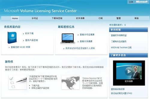 4、方便管理,购买此种产品形式的软件产品,客户将可以登录到微软批量许可服务中心来管理企业所购买到的所有软件,包括查看授权信息、镜像下载、密钥管理等工作,避免了盒装产品数量多了就难以管理的囧面。