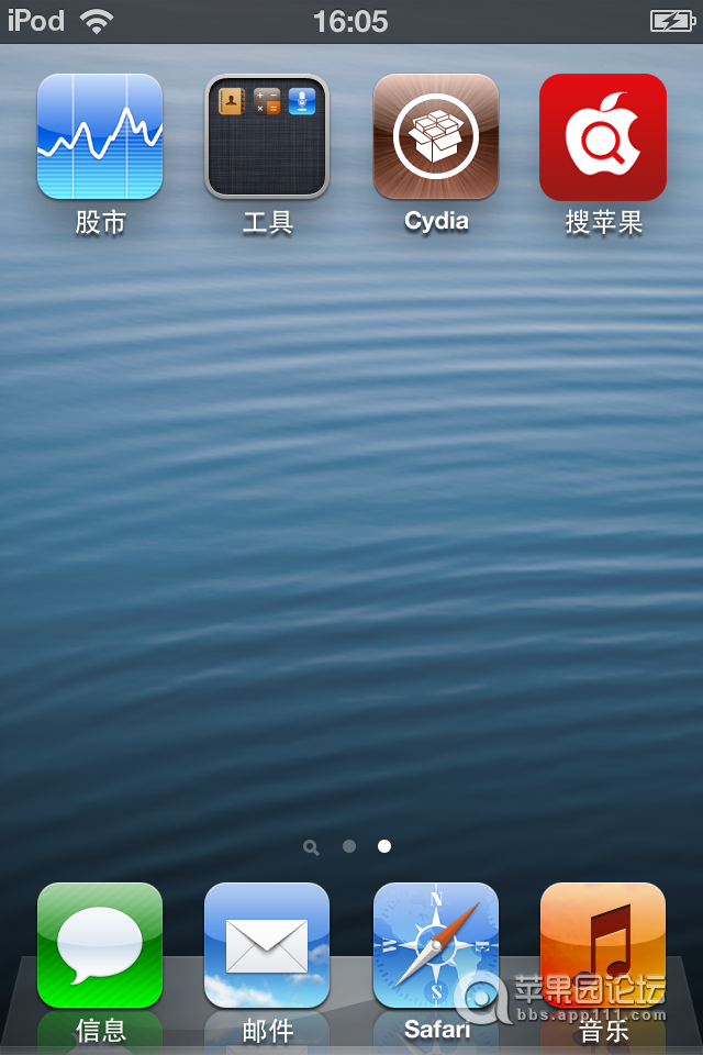 1、当设备重启完成后,桌面上会多出一个搜苹果图标(如果没有出现耐心等待几秒,会有延时)