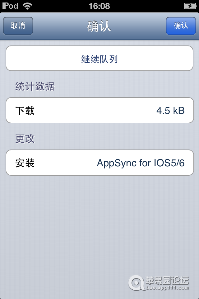 9、此时Cydia会弹出确认安装提示,我们点击右上角确认按钮。