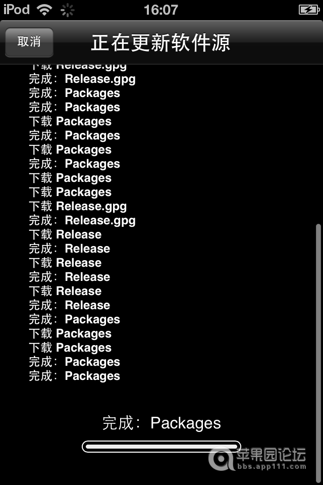 5、搜苹果会自动跳转到Cydia源并开始更新软件源。