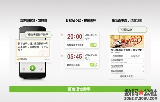 一年到头回不了一两次家的年轻人,最关心的就是和家长的沟通问题,而作为家长,同样也非常在意儿女们工作和生活。不过,家长在很多时候并不愿意把自己的对儿女的关切表现出来,而更喜欢用一种自己的方式来表达父母的爱。比如孩子过年回家,老俩口可能不会直接说要去车站或者机场接送儿女,但却会冒着风雪,“偷偷”的出现在儿女们的面前,甚至有些爹妈会急切的想知道孩子每一刻所在的位置。这些信息虽然查找非常方便,但对老年人来说操作起来并不容易,这时候像百度语音助手这样的应用就可以很好的解决爹妈们所遇到的困难。只要一个语音,就可以查询火车沿途经过的站点,飞机航班的起降时间,又或者是利用语音助手,了解一些年轻人现在的想法。而这样的助手,很可能在儿女不在身边的适合,充当一些生活帮手的角色。