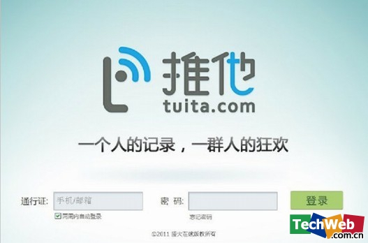“推他”被盛大定义为“富微博”,其实也就是可以发送文字以外的多媒体内容,包括短句、照片、文章、视频、音乐和文档。你可以说它像点点/tumblr也可以说它像搜狐微博。总之就是这样一款产品啦。“推他”可以同步到新浪和腾讯微博。值得注意的是“推他”可以直接上传doc、ppt、xls、pdf和txt格式的文档。会不会变成第二个爱问共享或百度文库呢?