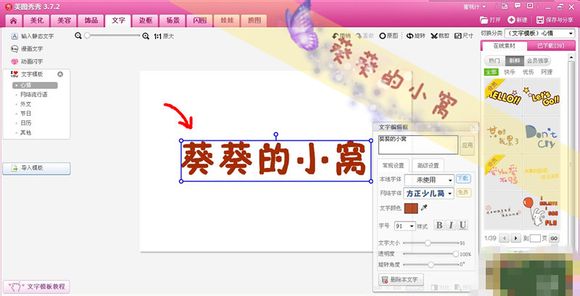 之后调整你输入的字的大小。