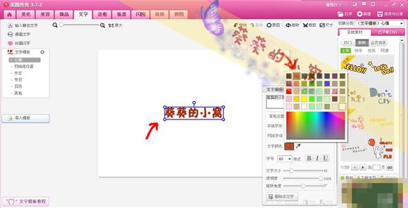 输入字以后我们选择自己喜欢的字体,然后调深一点的颜色。