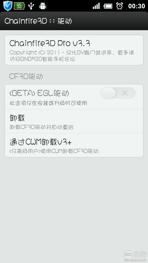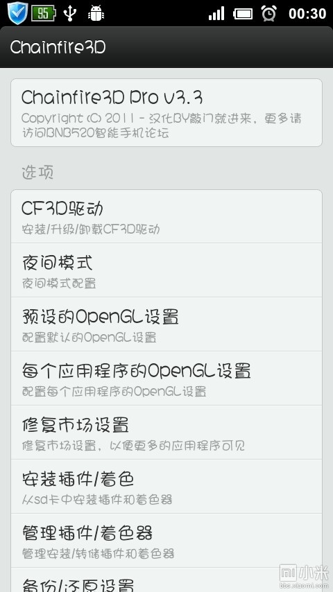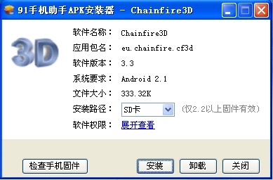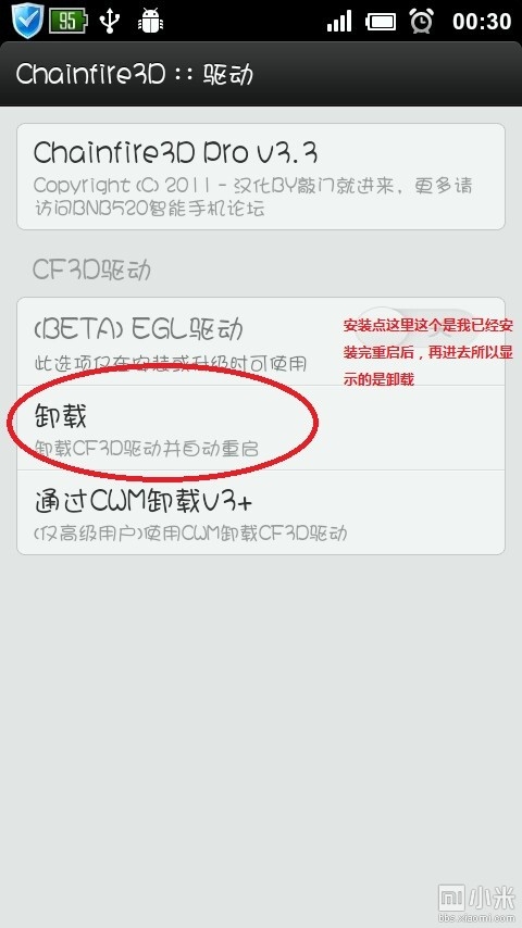 3、打开软件,点设置下的CF3D驱动安装,安装过程中手机会自动重启,不用担心。