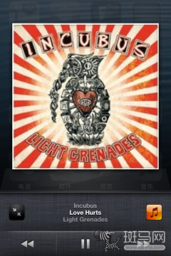 4:原生iOS后台的音乐控制界面十分简陋,Auxo不仅华丽也更实用。必要的控制按钮一应俱全,还有完整的歌曲信息,还包括标题、艺术家和专辑名。只要在播放界面向上滑动,就能调出模块、快速调整音量。