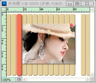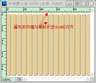 6、把多板图层与画布左边对齐,垂直居中,画布上竹简的中缝与横标尺的50%处对齐,见图4;