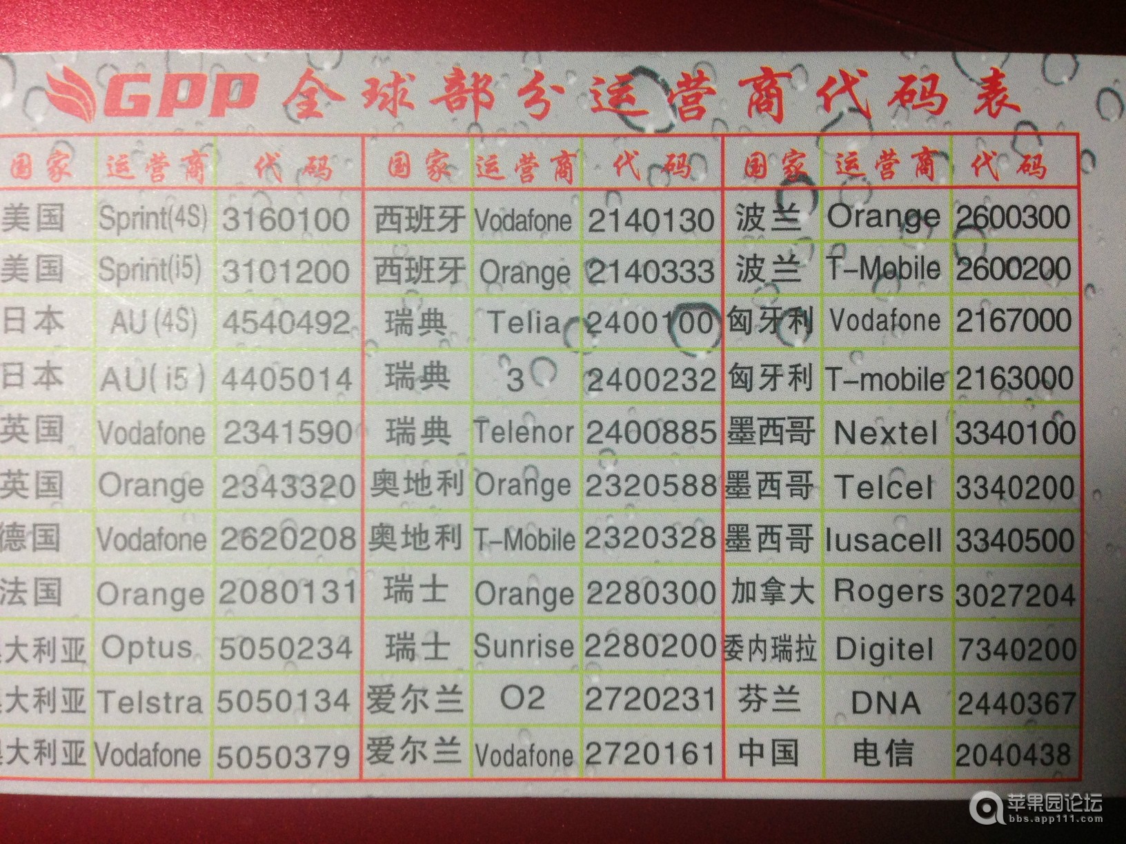 卡贴卖家说越狱后装个补丁可以完美显示联系人姓名,越狱后才发现没那么简单,论坛中大部分都是外版的在弄这些,买国行的都不折腾,很多帖子无法适用国行的机子,只有自己研究了,发现成功的都是指向/System/Library/Frameworks/UIKit.framework/PhoneFormats/目录下UIMobileCountryCodes.plist文件,这个文件是关键,1.改了“310”至“316”的“us”为“cn”不行!(实际上我猜想这是美版可以成功)2.加“001”“cn”也不行是其他的卡贴有可能成功)(3.改“454”的“hk”为“cn”也不行(这是日本销往香港的机子修改方法)买GPP卡贴时有一张对应表如下图: