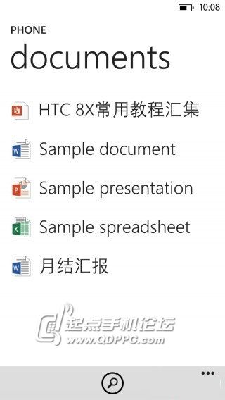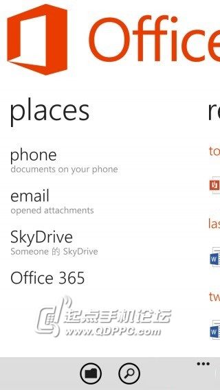 copy到手机里后,断开手机与电脑之间的连接,然后依次打开wp8里的office软件----手机(phone),便可以看到你刚刚传入到手机里面的pdf文件了,如图: