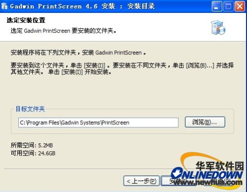点击下一步会有一个安装协议,同意后选择安装Gadwin PrintScreen的位置,如图(3)所示: