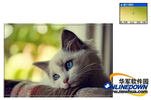 在截图时Gadwin PrintScreen会以细色黑边框显示截图区域,并在右上角有一个缩放窗口,缩放窗口可以查看鼠标位置图像放大后的效果,缩放窗口可以自由移动,如图(10)所示: