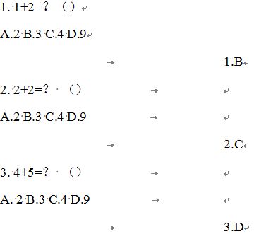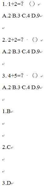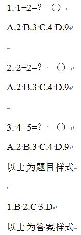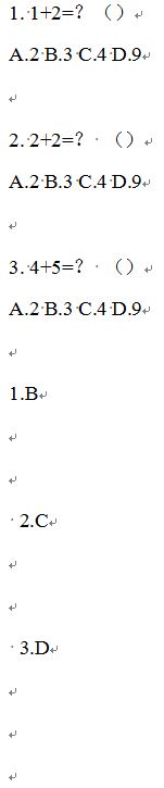 2、选中最后一个答案后的所有段落标记全部删除(如本例3.D后的三个段落标记)。效果如下:
