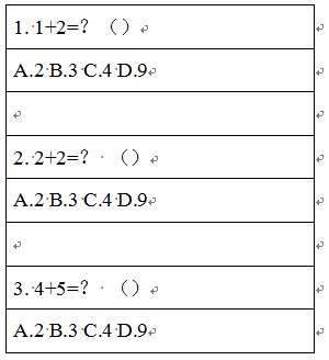 5、当答案表格处于全选状态,将光标移动到表格上呈空心箭头状时按左键,拖动此表移动到题目表第三行右侧框线外。效果如下: