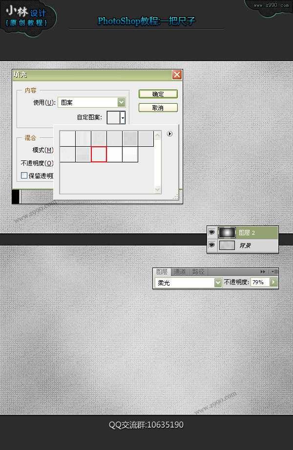 1,填充背景为灰色,再填充图案(图案下载地址: http://www.z990.com/html/Download/2013/0105/937.html)如图;