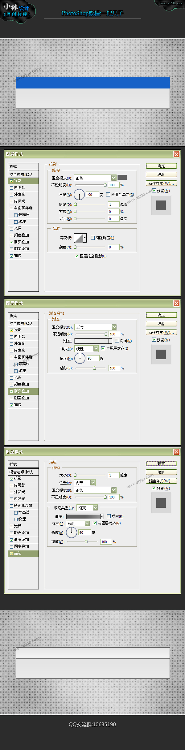4,再建立如图所示的蓝色矩形,添加图层样式,如图;