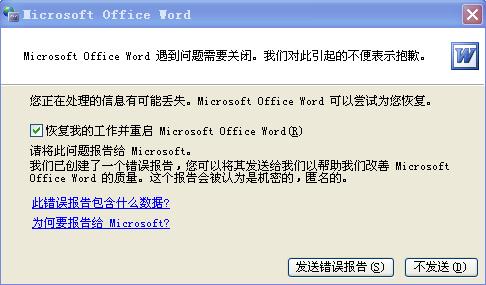 今天早上一来,word就抽风了,打不开,打开后出现了如下图所示的提示: