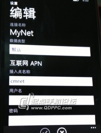 点击小勾确认退出,在接入点下选刚才创建的接入点net即可,此时如果关掉数据连接,E字就不会出现了,