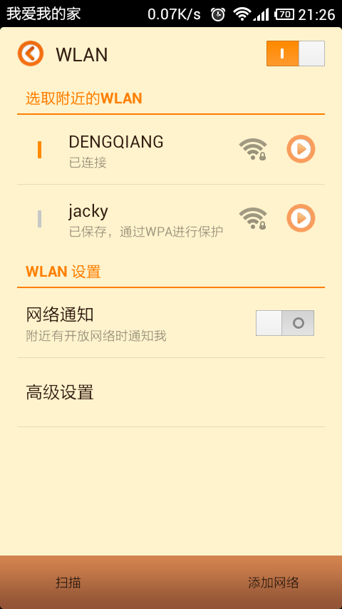ENGQIANG是家里的网络,jacky是中移动WIFI路邮器的网络