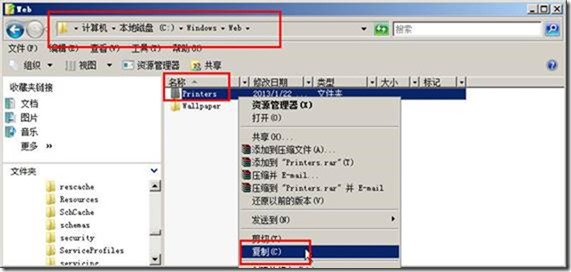 然后从c:\windows\web\文件夹中复制printers文件夹备用。