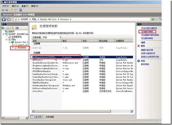(3)在“printers”虚拟目录中,在“处理程序映射”中,查看新添加的映射,如图1-4所示。