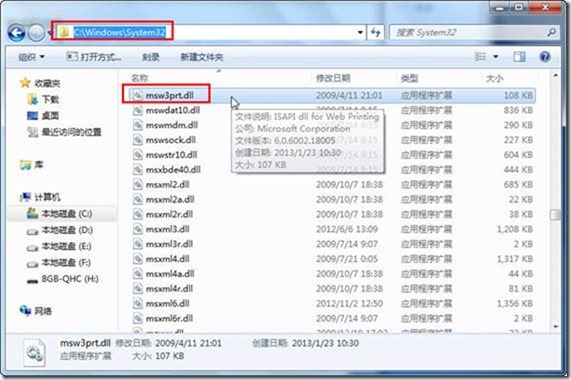 (4)复制msw3prt.dll到c:\windows\system32文件夹中,如图1-10所示。