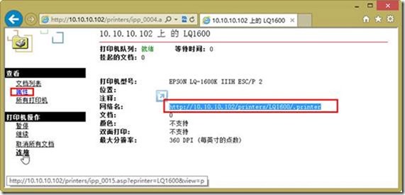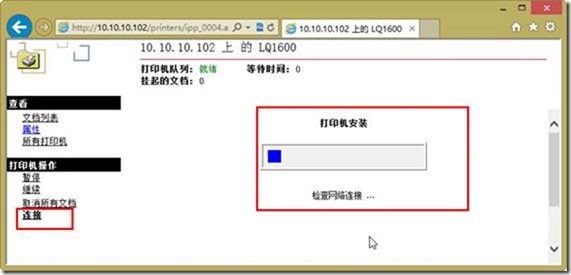 http://提供共享打印服务的主机IP地址或计算机名称/printers,浏览并连接打印机,主要步骤如下(假设提供打印共享服务的计算机IP地址为10.10.10.102。