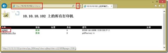 (1)在IE浏览器中输入http://10.10.10.102/printers并按回车键,浏览打开目标服务器上提供的共享打印机,并单击要连接的打印机名称,如图1-18所示。