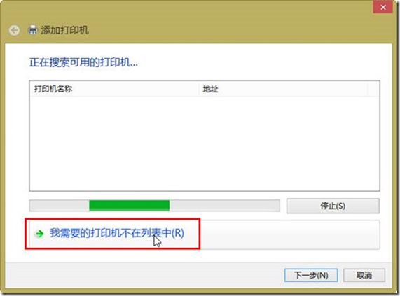 (2)在“添加打印机”对话框中单击“我需要的打印机不在列表中”链接,如图1-23所示。