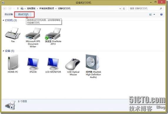 (1)在“设备和打印机”中单击“添加打印机”,如图1-22所示。