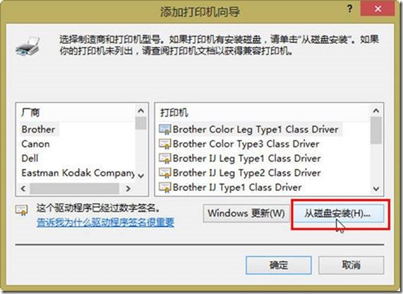 (4)此时会弹出 “添加打印机向导”对话框,手动添加打印机的驱动程序。如果操作系统支持该打印机,请在“厂商”列表中选择,如果不支持,请提供安装驱动,单击“从磁盘安装”按钮(如图1-25所示),选择驱动程序文件夹开始安装,这些就不再介绍。