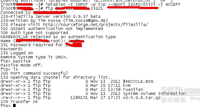 这些就是关闭了iptables,服务器是被动模式,用ftp命令操作的时候需要用passive就正常了。