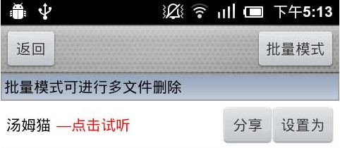 保存了的文件,我们可以点击试听,此外,该软件还支持把录制好的声音文件设置成联系人、来电铃声、短信铃声等哦。