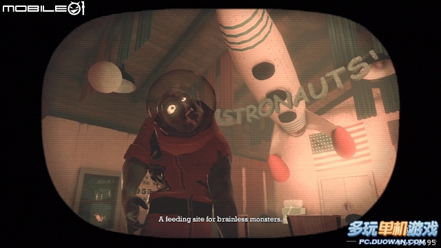 场景介绍完之后,游戏的名称还特别被写在有钉子的木板上,让玩家开始体会到快速钉木板的重要性,而且,如果眼尖的玩家应该有发现,有个僵尸的眼睛在板子的下方盯著萤幕看.......。