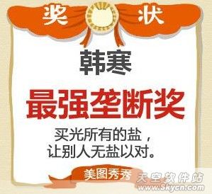 1小四。写书的人就是不一样,连吹个牛都要打两个小时草稿,我们小四同学获得的是认真负责奖,实在是众望所归啊! 韩寒。刚说要和李彦宏战斗到底的韩寒同学获得了“最强垄断奖”,理由竟然是要“买光所有的盐让别人无盐以对”,不知道李同学是不是家里备足了足够的盐哦,不然可要惨咯。